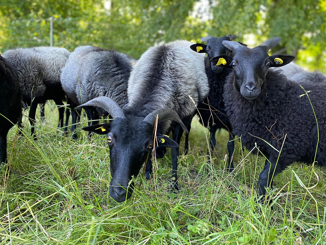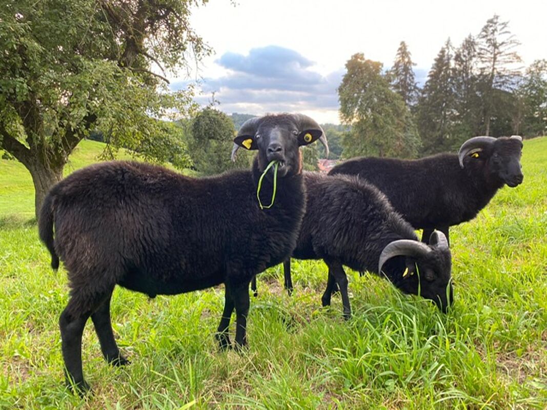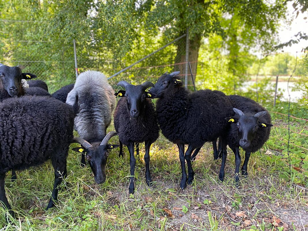 Unterbringung: Heidschnucken können ganzjährig im Freien gehalten werden, sofern für die Tiere einen trockenen und schattenspendenden Standort aufsuchen können.